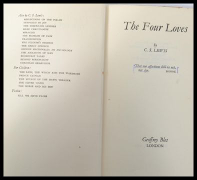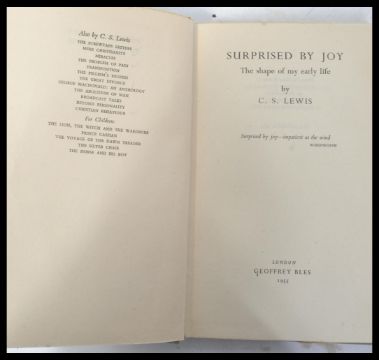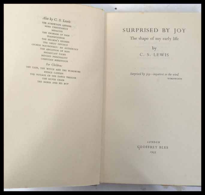 A group of three C.S. Lewis first edition hard back books , Letters to Malcolm Chiefly on Prayer , The Four Loves , Surprised by Joy. Complete with dust covers.