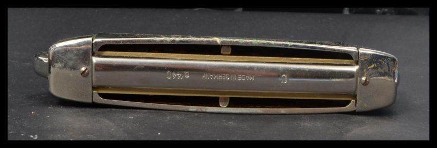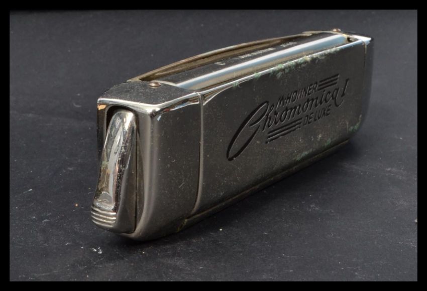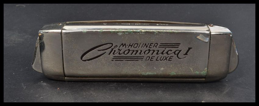 A vintage 20th Century Art Deco cased M. Hohner Chromonica I De - Luxe harmonica. Measures 15 cm wide.