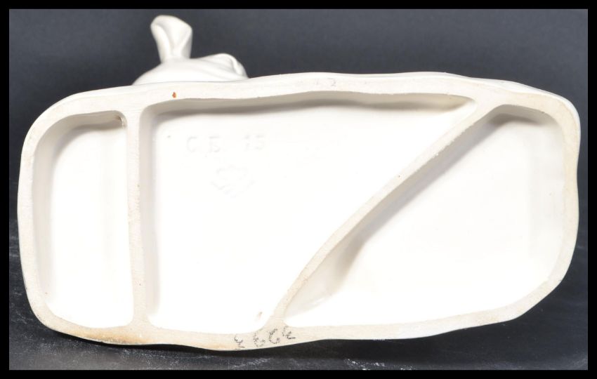 A Goebels ceramic figurine of a deer / faun raised on a white plinth base. Finished in a plain white glaze. Artist signature to base Makers stamp to underside CE15