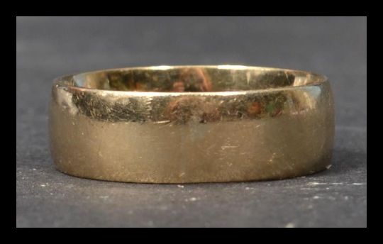 A hallmarked 9ct gold and diamond band ring having a single star set diamond. Hallmarked London. Weight 5.3g. Size R.
