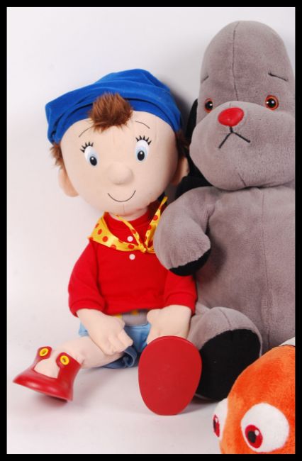 A collection of  Disney, Pixar & other film / tv realted plush character toys to include; large Noddy, large Sooty, talking Puss In Boots, Jungle Book Orangutan, Ratatouille & Finding Nemo's ' Nemo '. All loose.