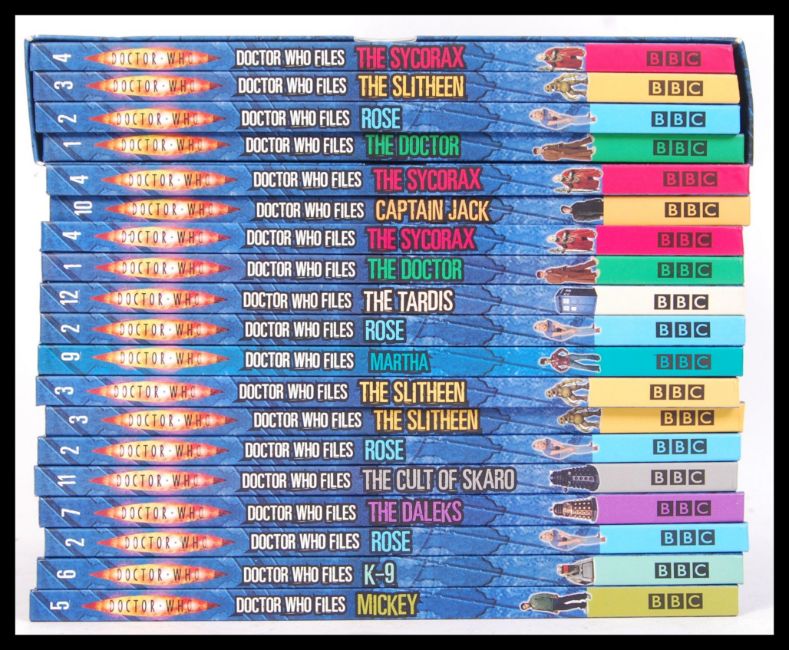 A collection of 19x BBC Doctor Who ' Doctor Who files ' for various characters to include; Martha Jones, Rose Tyler, The Sycorax, The Doctor, The Tardis, The Slitheen, The Daleks, K-9 & others. Some duplicates.