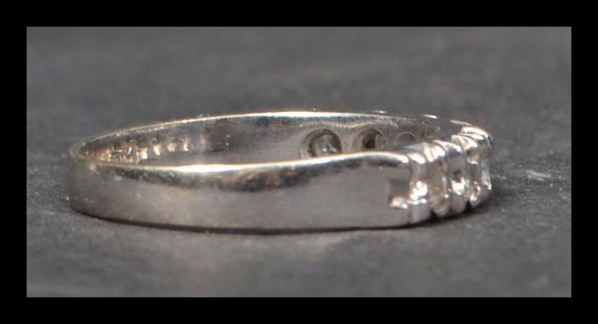 A hallmarked 9ct white gold and white stone half eternity ring set with 7 white stones. Weight 3.1g. Size O.