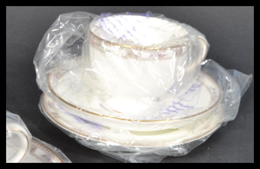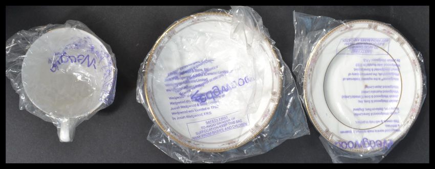 A Wedgwood bone China six person cover tea service in the Colchester pattern, consisting of six trio's with each piece retaining it's original plastic wrap.