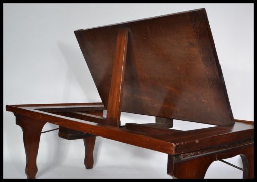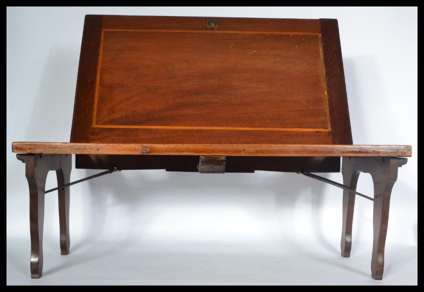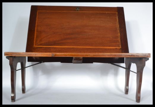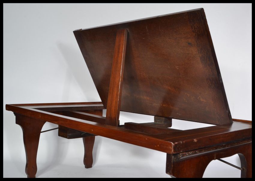A late 19th / early 20th century folding metamorphic mahogany inlaid galleried bed / reading tray raised on four shaped legs. Measures 23cm h x 62cm w.