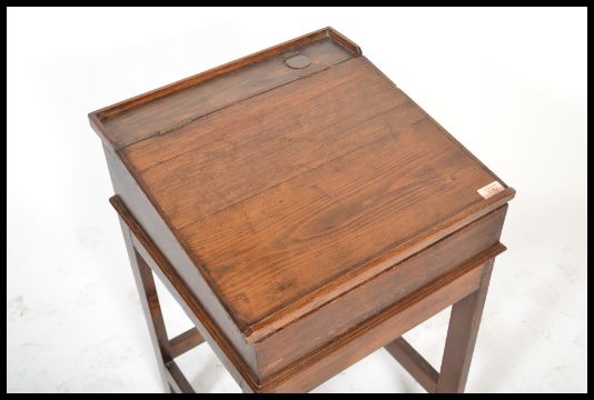 A vintage early 20th Century childs desk together with a 19th Century mirror fronted wall hanging corner unit. Measures: 77cm high x 44cm wide x 45cm deep.