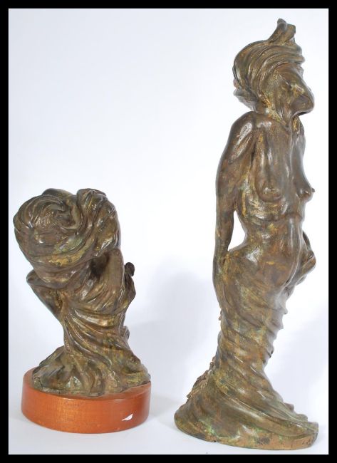 Two vintage 20th century Art Deco style statues figurine sculpture Artist Marquette 's  of maidens raised on circular bases. Highest measures 49 cm.