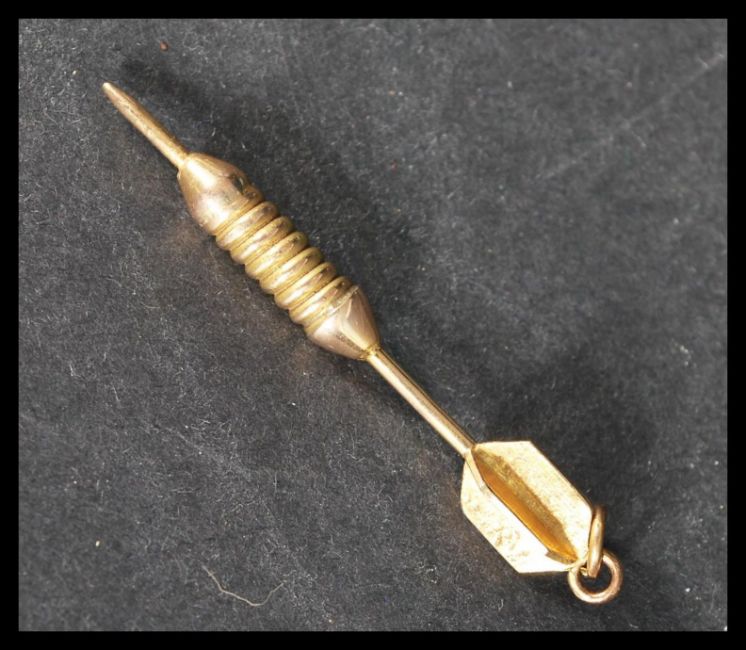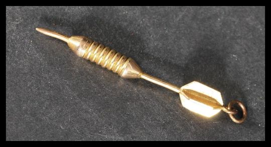 A yellow metal tests as 9ct gold pendant in the form of a dart. Weighs 4.6 grams