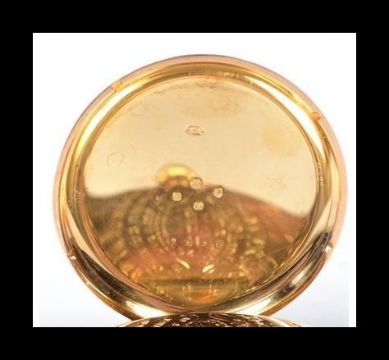 A Victorian gentleman's 18ct gold cased open faced pocket watch by Edward Culver, Clerkenwell Road, London, No 2336. Hallmarked 18ct gold to inner inner case. The dial with roman numeral chapter ring, rare power winding winfd gauge with subsidiary dial lower centre.  The rear of the case with armorial crest with notation to banner ' My Word is My Bond ' The innner case marked ' Presented to the Revd Bevane vicar of St Andrews Stoke Newington by a few members of the congregation Feb 9th 1888. Total weight 152.8g . measures 5cms diameter