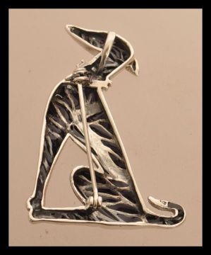 A sterling silver and enamel dog brooch having a ruby collar. Weighs 10 grams.