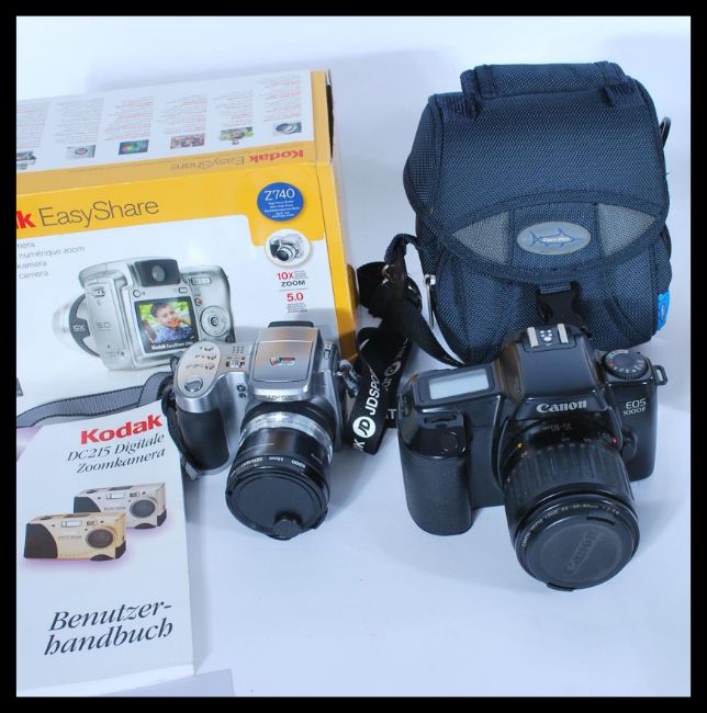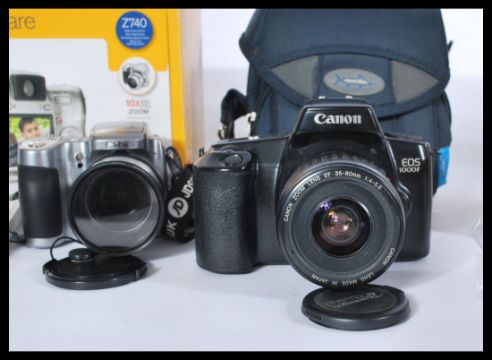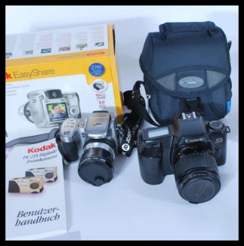 A collection of modern cameras to include a Nikon 3200 , Canon Powershot , Eos 1000f Canon , Kodak 2740 easyshare etc. Various cases and accessories.