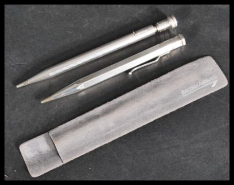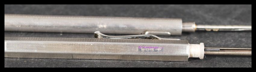 Two silver pusher pencils of larger form one being a sterling life long and the other of hexagonal form hallmarked for Yard o Lead. Please see images.