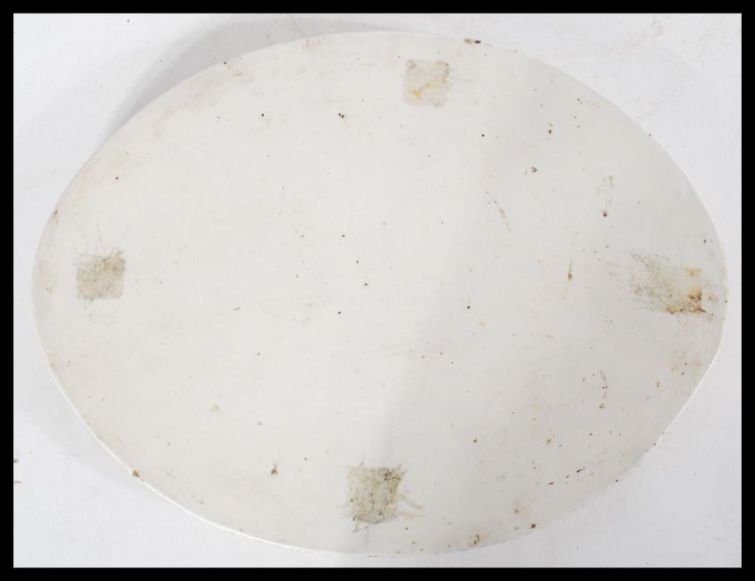 A 19th century Chinese porcelain tray having four split decorated sections with painted cartouche panels with lucky Chinese symbols. The tray of oval form with raised gallery edge. Measures 2.5 cm high, 28 cm wide and 21.5 cm deep.
