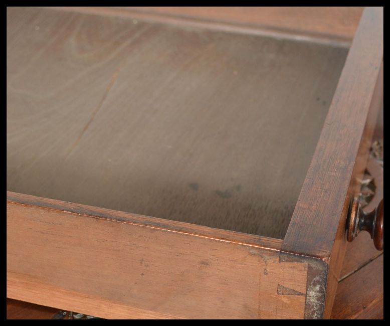 A Victorian mahogany writing table desk being raised on tapering legs with fitted frieze drawers having inset carved detailed wooden mahogany desk top