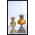 2 vintage early 20th century oil lamps to include a gilt metal and amber glass reservoir example along with another brass example
