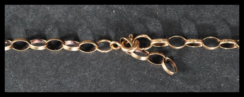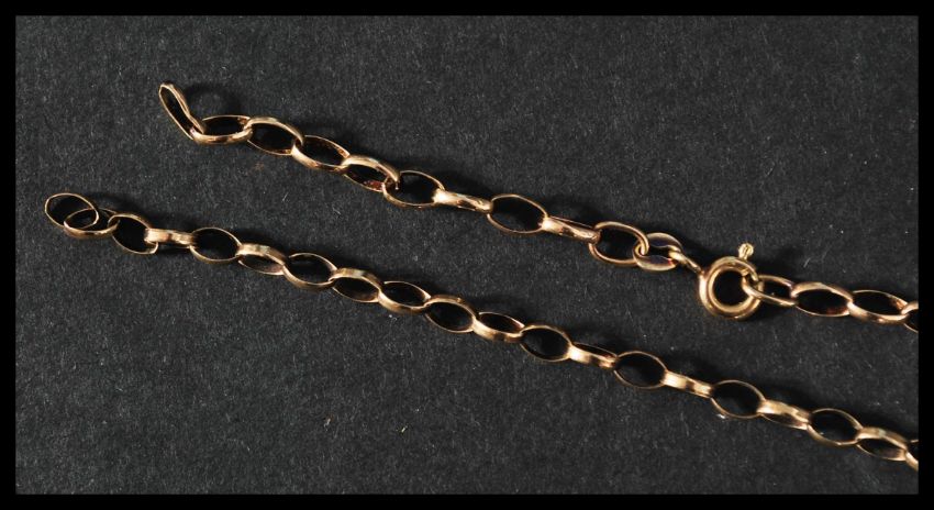 Two hallmarked 9ct gold necklace chains having bolt ring clasps. Total weight 7.7 grams.