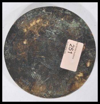 An antique Chinese circular bronze hand mirror of circular form decorated with dragns and dogs of Fu. Please see iamges.