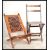 A 20th Century contemporary folding Congo chair, having a geometric panel to the back of the chair and slated seat together with another folding chair.