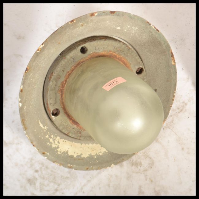 A group of three vintage retro 20th century space age style GEC industrial caged bulk head lights.