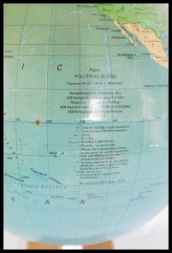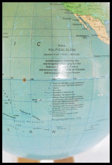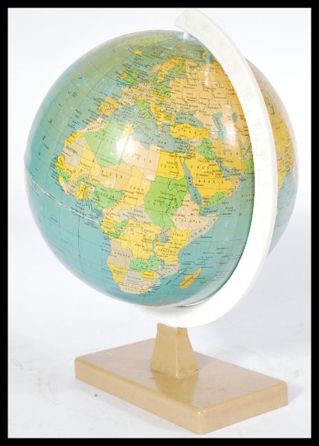 A vintage small 20th century desktop globe on plinth base by Rath entitled the political globe.