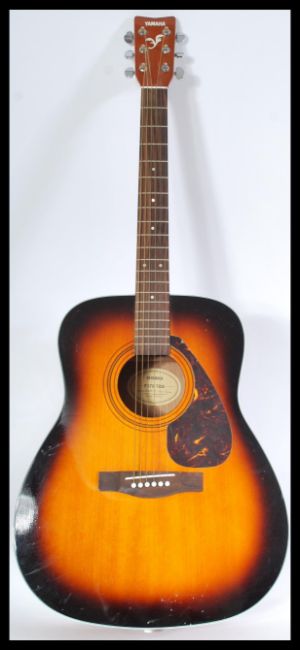 A 20th Century six string acoustic guitar by Yamaha, applied paper label reading Yamaha F370 TBS