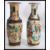 A pair of believed 19th century Chinese vases having crackle glaze with painted decoration of warriors and horses with tapered necks flared rims and dragon handles.