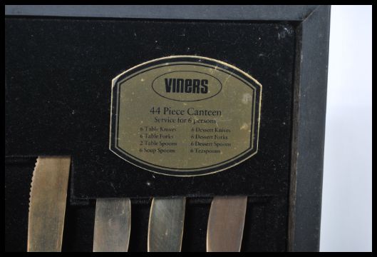 A vintage 20th century Viners canteen of cutlery in the Balmoral pattern , part of the Viners Bronze Collection. Complete in fitted cutlery case.