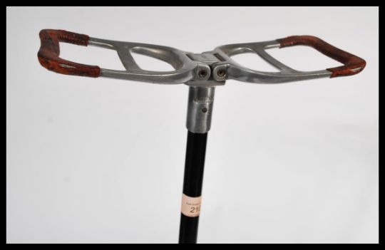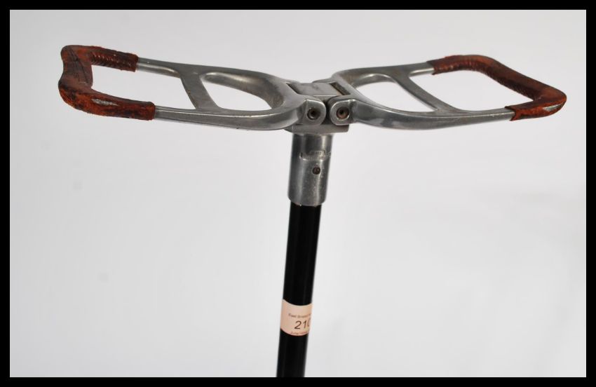 A leather topped vintage 20th Century shooting stick with makers marks for The  Featherwaite. Measures 87 cm high.