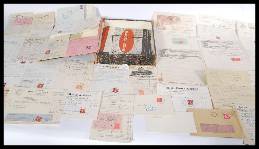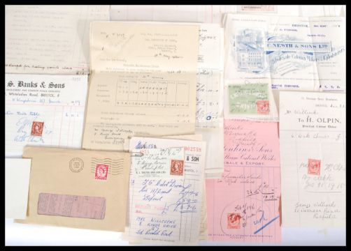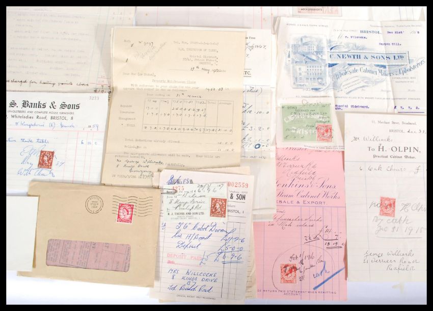 An interesting folio of early 20th century invoices and paperwork relating to Bristol companies to include Antiques invoice and others