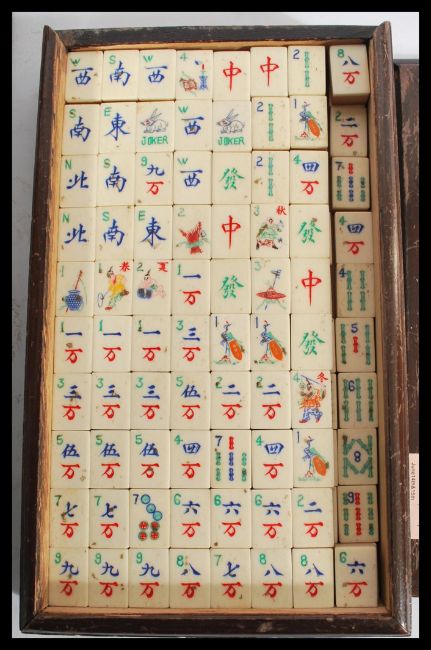 Two Chinese Mahjong sets one being an early 20th century wooden cased example and the other later in carry case.