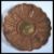 A pair of early to mid 20th Century copper wall chargers of different sizes with temple dogs in relief to the central panels the border being embossed with turquoise stones. Largest measures 43.5 cm diameter.