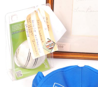 Cricket Autographs; A collection of assorted cricket autographs including MRF World Series Nehru Cup 1989 England signed and framed photo, Gloucestershire County Cricket Club signed hat and various over effects.