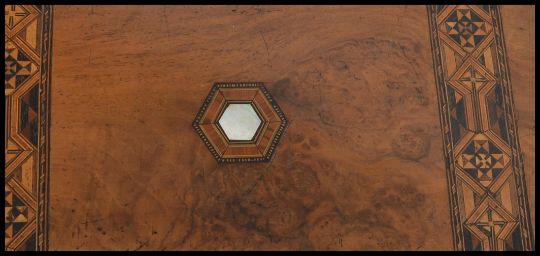 A 19th century walnut tunbridge inlaid dome top writing box. The inlaid tunbridge marquetry banding with fully appointed interior having glass inkwell and hidden compartment