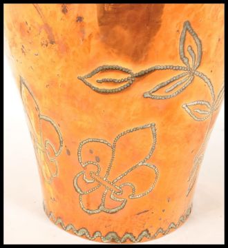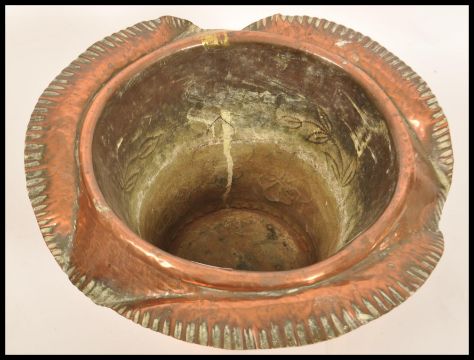A large copper ice bucket of French origin bearing the coat of arms for Henry IV. The cylindrical tapering bucket with oversized hand beaten wavey flanged top. Latin inscription to verso ' URBIS PALLUDUM ET GENTIS '  Measures 25cms high  x 42cms diam