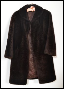 Two vintage 20th Century simulated ladies full length fur coats together with a mink tail hat and a sheepskin hat.