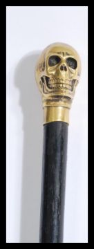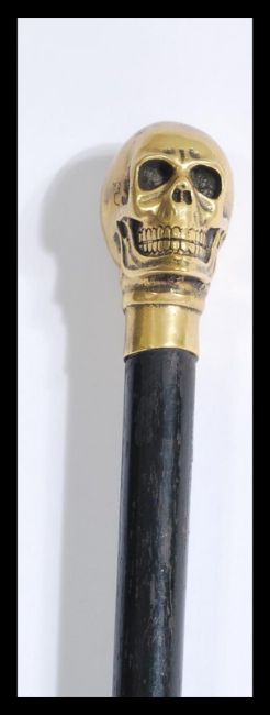 An early 20th century walking stick cane having a bronze skull knop handle set to a tapering ebonised shaft. Measures 96 cm high.