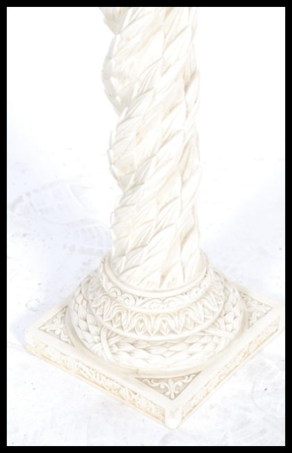 A 20th century unusual resin cast plant stand torchere. The plinth base and top united with an unusual gothic twist column