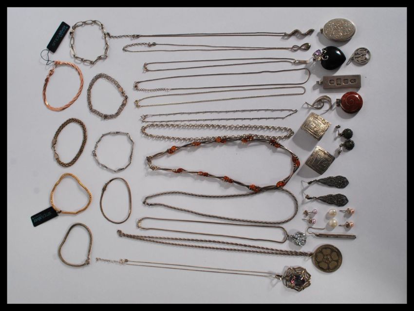 A large collection of sterling silver jewellery to include many necklace and pendants , bracelets , earrings , pearls etc. Please see images.