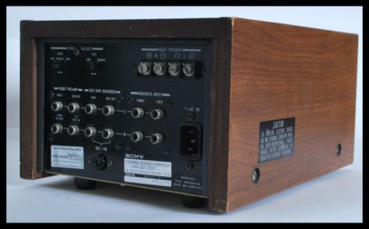 A retro 20th century  teak cased Sony 4 / Quadraphonic channel decoder / amplifier SQA-2030, knobs and dials to the front with brushed steel front.