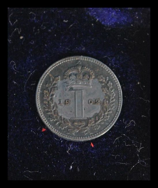 A set of  early 20th century 1902 Maundy coins. The four piece coin set in a fitted case. Largest measures 2 cm diameter.