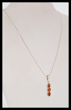 A collection of 925 silver amber set jewellery to include a large festoon pendant necklace together with another smaller pendant necklace and a cabochon ring. Weight approx 38g.