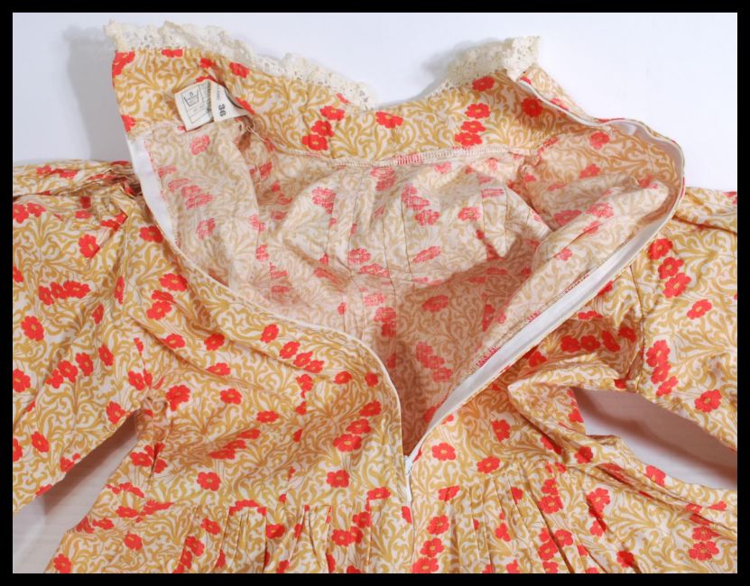 A vintage 20th century 1960's/70's ladies retro dress by Laura Ashley in original box being a full length print pattern dress size 12/14. Along with another.