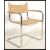 A retro style chrome cantilever dining chair with original tan leatherette back and seat pads with tubular chrome supports.