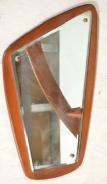 A retro teak wood atomic ' Astro ' oval coffee table by G Plan, having a drop centre glass panel, the teak frame supporting the oval glass surface. Together with a atomic style teak wood mirror. Table Measures: 41x125cm