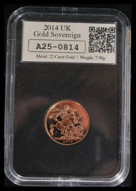 Gold Sovereign - A 2014 Tower Hill gold sovereign coin within capsule case complete with presentation box and certificate. Limited to 995.