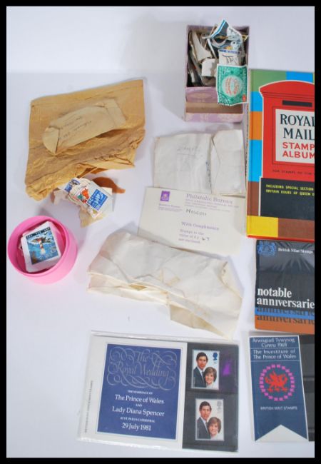A group of vintage stamps loose and in albums. Two albums stocked with various English and other stamps with some loose kiloware.