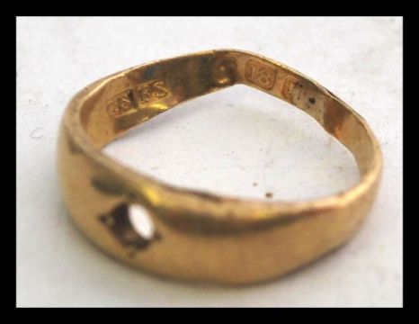 A 9ct gold vintage early 20th century Tie clip brooch with chased decoration along with a Hallmarked 18ct gold ring AF. Clip weighs 1.9 grams ring weighs 2.1 grams.