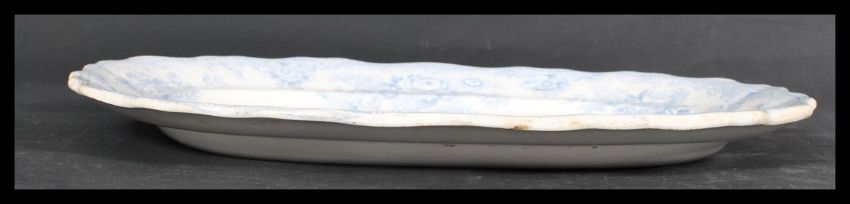 A set of 19th Century blue and white graduating ceramic meat platters by Davenport in the Asiatic Pheasant pattern. Widest measures 44 cm.
