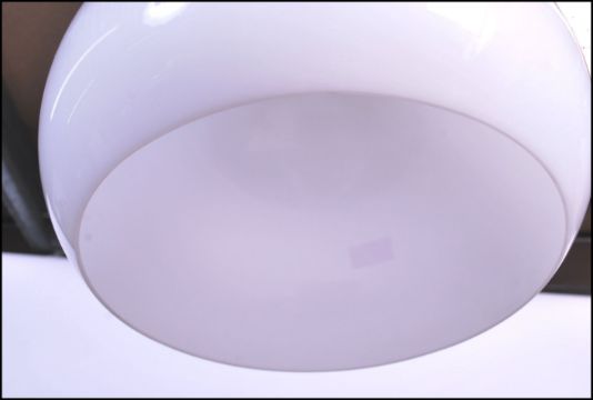 Harvey Guzzini - A 1970's retro vintage round dome shaped pendant light / lamp shade in a translucent white having an applied label to the outside. Measures 25cm x 34cm diameter