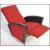 A fantastic mid 20th Century retro vintage Italian two tone recliner easy lounge chair / armchair having the tall thin back and shaped armrests upholstered in a black leather vinyl and blood red velour raised on tapering metal legs.Measures 102cm x 67cm x 80cm.